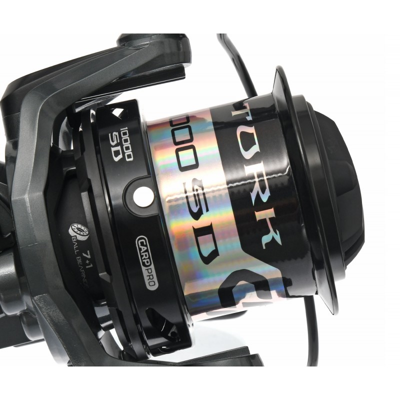 Carp Pro Tork 10000 SD – новинка 2023 года! Мощная и качественная карповая катушка Carp Pro Tork предназначена для ловли трофейной рыбы на максимальных дистанциях и отличается высокой надёжностью, эффективностью и удобством в работе. В конструкции Carp Pro Tork 10000 SD все подчинено идее выполнения дальних и точных забросов. Бесконечный винт, который обеспечивает идеальную укладку лески на шпулю вытянутой формы с геометрией Long Cast, имеет малый шаг, благодаря чему шпуля совершает при вращении ротора очень медленные возвратно-поступательные движения. Леска ложится на шпулю виток к витку, что обеспечивает аккуратную и плотную укладку, а, значит, – минимальное трение при забросе. Механизм катушки Carp Pro Tork, размещённый в алюминиевом корпусе, обладает высокой прочностью и внушительными тяговыми характеристиками. Жёсткость алюминиевого корпуса обеспечивает идеальную подгонку деталей механизма за счёт чего их посадочные места не разбиваются, а срок службы катушки многократно возрастает. Сверхпрочная ось с лёгкостью выдерживает значительные нагрузки, возникающие при вываживании трофеев. Надёжная алюминиевая ручка имеет удобный в работе обрезиненный кноб. Ролик лесоукладывателя конструкции Anti-Twist предотвращает перекручивание лески. Быстрый фрикционный тормоз Speed Drag с мощными дисками отличается высокой стабильностью работы и не подведёт в самый ответственный момент. Carp Pro Tork – это не только современный высокотехнологичный продукт со стильным дизайном, но и надёжный рабочий инструмент для охотников на крупного карпа!