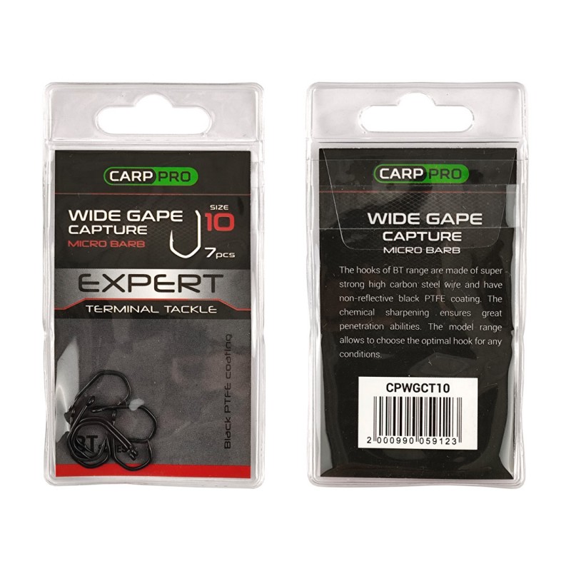 Pro Wide Gape Capture доступен в размерах 4, 6, 8, 10 и 12, что позволяет ловить рыбу от карася до дикого сазана.
