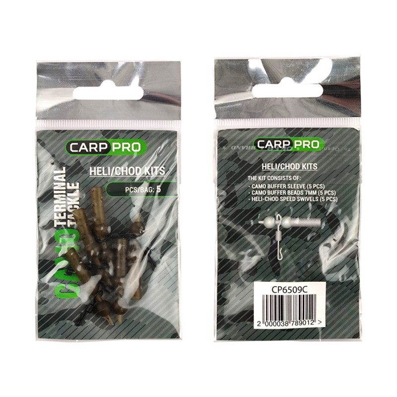 Набор терминальных снастей из резины для оснасток «чод» или «вертолет». В набор входят 5 готовых камуфлированных комплектов состоящих из отбойной трубки, буферной бусины и вертлюга. Для любителей глухих оснасток в отбойной трубке предусмотрено отверстие под фиксатор грузила. Теперь все, что требуется от рыболова – надеть монтаж на ледкор и прицепить поводок!