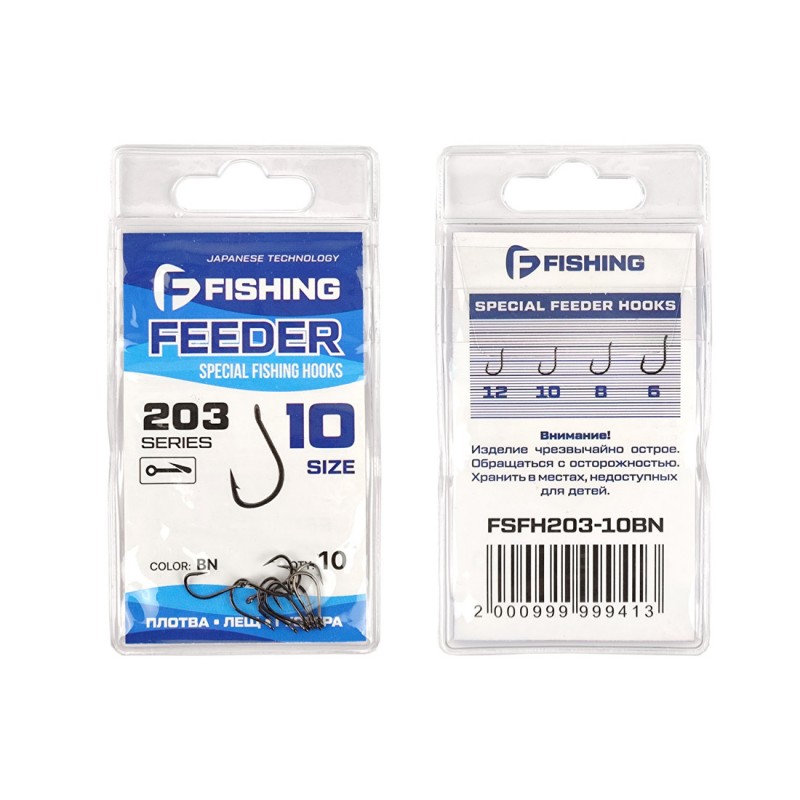 F-FISHING Крючок Special Feeder Hooks 203 - это серия качественных одинарных крючков, изготовленных по японской технологии предназначенная, прежде всего, для ловли на животные и растительные насадки, а также для создания фидерных поводков. Изгиб цевья обеспечивает превосходную подсечку рыбы. Крючки отличаются острейшим жалом, которое хорошо сохраняет заточку. Одна из особенностей данной серии заключается в том, что эти крючки подходят для ловли всех видов белой рыбы. Special Feeder Hooks изготовлены из качественной углеродистой стали методом горячей штамповки с последующей обработкой. Они отличаются повышенной прочностью и устойчивостью к деформации. Отменная острота жала достигается методом химической заточки. Темное покрытие великолепно маскирует крючок, исключая возникновение бликов. Крючок Special Feeder уверенно выдерживает сравнение с лучшими образцами по прочности и остроте
