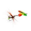 F-FISHING Justace – популярная серия компактных вращающихся блесен ин-лайн (In-line) – с лепестком, насаженным непосредственно на ось блесны, то есть без так называемой дужки, – разработанных для ловли в горных ручьях. При всей своей компактности, благодаря тяжелому сердечнику, эти приманки имеют достаточный вес для дальних и точных забросов. Лепесток не залипает, быстро заводится, прекрасно работает не только на любой скорости проводки, но и на падении приманки. Проводка блесен in-line Justace может быть как скоростной в приповерхностных слоях воды, так и глубоководной – с самым медленным вращением лепестка на грани сбоя, что часто соблазняет на поклевку даже мирную рыбу, не говоря уж о хищных и полухищных видах. Вертушки Justace стабильно держат заданный горизонт проводки, что позволяет эффективно использовать их и в стоячей воде, и на течении при облове приямков, обраток, речных перекатов и т.п. Блесны комплектуются острейшими тройниками VMС с навязанными на них мушками, а разнообразие цветов и размеров Justace F-FISHING позволяет без труда выбрать подходящую модель под любые условия ловли.
