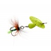 F-FISHING Justace – популярная серия компактных вращающихся блесен ин-лайн (In-line) – с лепестком, насаженным непосредственно на ось блесны, то есть без так называемой дужки, – разработанных для ловли в горных ручьях. При всей своей компактности, благодаря тяжелому сердечнику, эти приманки имеют достаточный вес для дальних и точных забросов. Лепесток не залипает, быстро заводится, прекрасно работает не только на любой скорости проводки, но и на падении приманки. Проводка блесен in-line Justace может быть как скоростной в приповерхностных слоях воды, так и глубоководной – с самым медленным вращением лепестка на грани сбоя, что часто соблазняет на поклевку даже мирную рыбу, не говоря уж о хищных и полухищных видах. Вертушки Justace стабильно держат заданный горизонт проводки, что позволяет эффективно использовать их и в стоячей воде, и на течении при облове приямков, обраток, речных перекатов и т.п. Блесны комплектуются острейшими тройниками VMС с навязанными на них мушками, а разнообразие цветов и размеров Justace F-FISHING позволяет без труда выбрать подходящую модель под любые условия ловли.