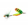 F-FISHING Onyx – вращающиеся блесны, обладающие высокой уловистостью и качеством изготовления. Конструктивно они представляют собой вращающийся на проволочной оси лепесток с литым сердечником в виде малька и мушкой на тройнике. Кроме того в конструкции оси предусмотрен встроенный вертлюг, предотвращающий перекручивание лески активно вращающейся приманкой. Лепесток блесны имеет классическую округлую форму. Отклоняясь от оси на 40-45 градусов, он заводится с первых оборотов катушки и стабильно работает как на течении, так и в стоячей воде, продолжая свое вращение даже на небольших паузах в проводке. Все модели вертушек Onyx обладают прекрасными полетными качествами, обеспечивая дальний и точный заброс. Блесны Onyx от компании F-FISHING комплектуются заводными кольцами и острейшими тройниками VMC, а видовое разнообразие пойманных с их помощью трофеев лишний раз доказывает универсальность и высокую эффективность этих приманок!