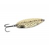 Колеблющаяся блесна F-FISHING Rotto обладает узким и овальным телом, благодаря чему она превосходно преодолевает дальние расстояния при забросах. Блестящая, в точечных выемках, поверхность приманки напоминает чешую, которая великолепно играет на свету и эффективно привлекает хищную рыбу. F-FISHING Rotto комплектуется острейшим тройником и фирменными кольцами VMS. Серия представлена золотой и серебристой моделями, а также сочетанием серебристого и золотого покрытия с красным, синим или зеленым цветами, что позволяет выбрать подходящую модель под конкретное место и условия лова. Опытные рыболовы отмечают, что F-FISHING Rotto наиболее уловиста при ступенчатой проводке в охоте на крупную щуку и судака.