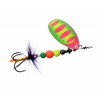 F-FISHING Twidd – вращающиеся блесны, обладающие высокой уловистостью и качеством изготовления. Конструктивно они представляют собой вращающийся на проволочной оси лепесток с сердечником из нескольких разноцветных шариков и мушкой на тройнике. Вес сердечников разных моделей варьируется набором размещенных на их оси шариков различных диаметров. Лепесток имеет классическую округлую форму типа Aglia. Отклоняясь от оси на 40-45 градусов, он отлично заводится с первых оборотов катушки и стабильно работает как на течении, так и в стоячей воде, продолжая свое вращение даже на небольших паузах в проводке. Центр тяжести вертушек Twidd смещен ближе к задней части. Такое конструктивное решение существенно влияет на увеличение дальности и точности заброса. Все блесны Twidd от компании F-FISHING комплектуются заводными кольцами и острейшими тройниками VMC, а видовое разнообразие пойманных с их помощью трофеев лишний раз доказывает универсальность и высокую эффективность этих приманок!