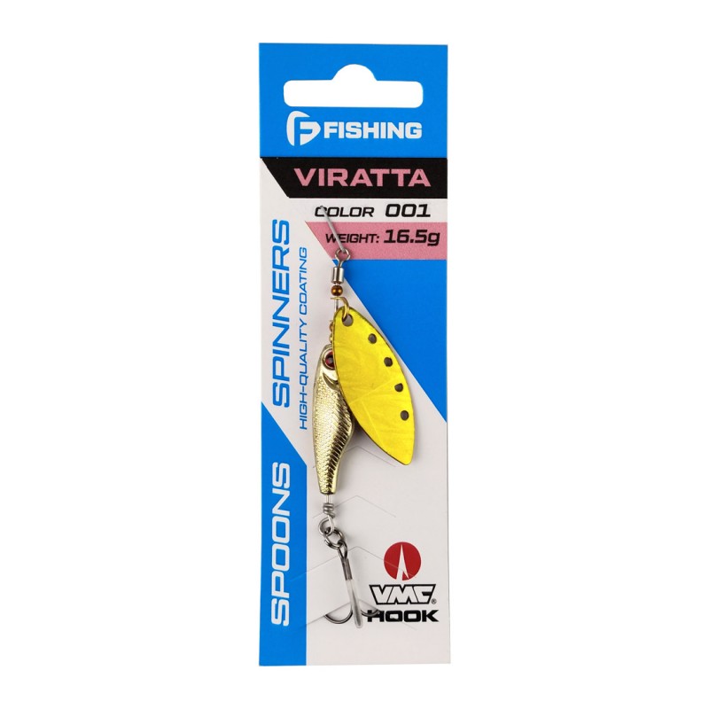 F-FISHING Viratta — фантастически уловистая вращающиеся блесна на вертлюге, с утяжелителем в форме миниатюрной рыбки. Как показала практика, «крупная» Viratta весом 16,5 г великолепна при ловле щуки летом в жаркую погоду, а Viratta малых размеров просто незаменима при охоте на жереха и окуня. Причем блесны допускают любую скорость проводки независимо от глубины и силы течения. Достаточно большой вес при небольших габаритах делают Viratta идеальными в условиях, когда требуются сверхдальний заброс. Сбалансированная конструкция позволяет очень удачно ловить «на снос», «подвешивать» их над определенными местами на перекатах, применять другие способы проводки. При этом игра Viratta способна привлечь самого осторожного хищника! Эти блесны также хороши при ловле абсолютного большинства видов рыб, включая и тех, которых принято считать мирными.