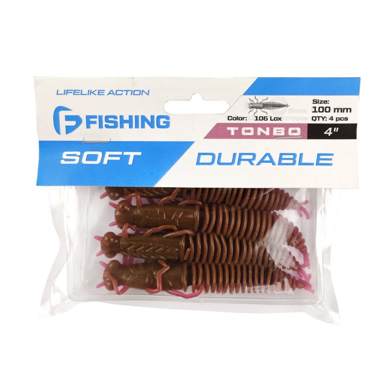 Съедобные приманки Tonbo имитируют личинку стрекозы – казару. Благодаря ребристой конструкции имеют достаточно большой объем, отличаясь при этом исключительной мягкостью и подвижностью. При проводке ребра Tonbo создают турбулентность, повышающую заметность приманки. Дополнительную привлекательность приманке обеспечивает собственная игра, пусть не активная, но вполне реалистичная. Она наиболее выражена у крупных моделей и представляет собой колебания сплющенной в горизонтальной плоскости хвостовой части. Благодаря реалистичному виду приманок к улову часто добавляется белая рыба, которая, наряду с хищниками, не прочь полакомиться личинками стрекозы и других насекомых.