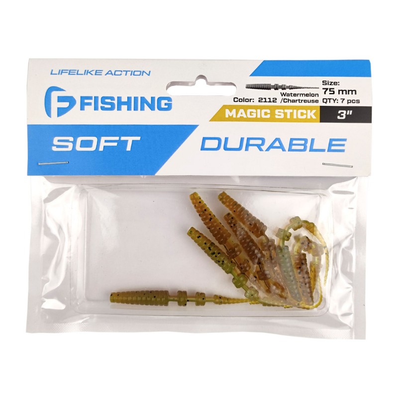 F-FISHING Слаг Magic Stick 3" #2112 Watermelon/Chartreuse 7.5см 8шт