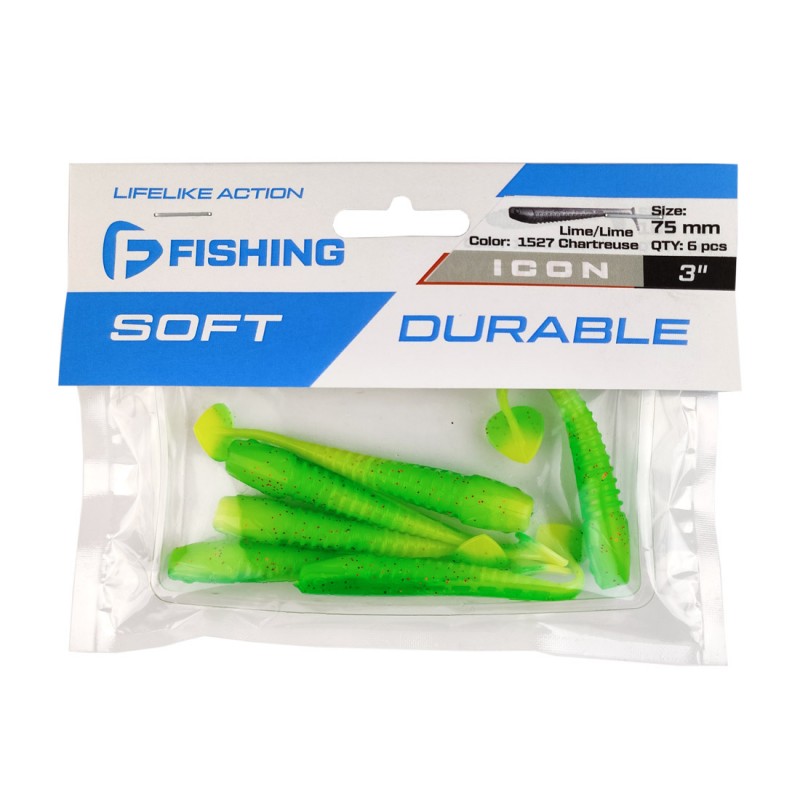 F-FISHING Виброхвост Icon 3" #1527 Lime/Lime Chartreuse 7.5см 6шт