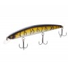 F-Fishing Hellcat 130F – крупный, сильно вытянутый воблер, который прекрасно работает при поиске щуки на больших акваториях. Имеет длину 130 мм и весит 19 г. Система дальнего заброса обеспечивает очень сильное смещение центра тяжести в хвостовую часть, благодаря чему воблер летит как дротик – далеко, точно и с минимальными колебаниями. В передней части корпуса шарики фиксируются приливом на дне канала, по которому они передвигаются. Благодаря этому воблер при проводке имеет фиксированный центр тяжести. Уходы в стороны во время рывковой проводки Hellcat 130 совершает очень дальние, как и положено воблеру такой большой длины с вытянутыми пропорциями. Характерной особенностью движений воблера является покачивание с боку на бок во время этих уходов. Оно не затухает даже после полной остановки приманки и является дополнительным привлекающим фактором, провоцирующим хищника на атаку во время паузы. При равномерной проводке Hellcat 130 F обладает не слишком интенсивной высокочастотной игрой, поэтому лучше не использовать эту приманку для равномерной проводки в стоячих водоемах. Впрочем, при проводке потяжками, как ведут крэнкбейты, воблер демонстрирует хорошие результаты. Оснащен тремя острейшими крючками VMC и усиленными заводными кольцами.