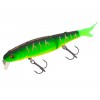 Оригинальный составной воблер, оборудованный хвостовым плавником из мягкого пластика. Конструкция соединения ограничивает свободу движения частей, что не сказывается негативно на работе воблера, но при этом снижает риск захлестов, как во время проводки, так и при забросе. Этот воблер – прекрасный выбор для ловли малоактивной щуки, не реагирующей на мощные рывки, прежде всего, в стоячих и слабопроточных водоемах. Он рассчитан на очень аккуратные, слабые рывки, во время которых уходит в стороны далеко, но на небольшой скорости. Воблер не останавливается в воде как вкопанный, его движения затухают плавно, что провоцирует на атаку даже самую вялую хищницу. Приманка снабжена шумовой капсулой, которая является дополнительным привлекающим фактором.