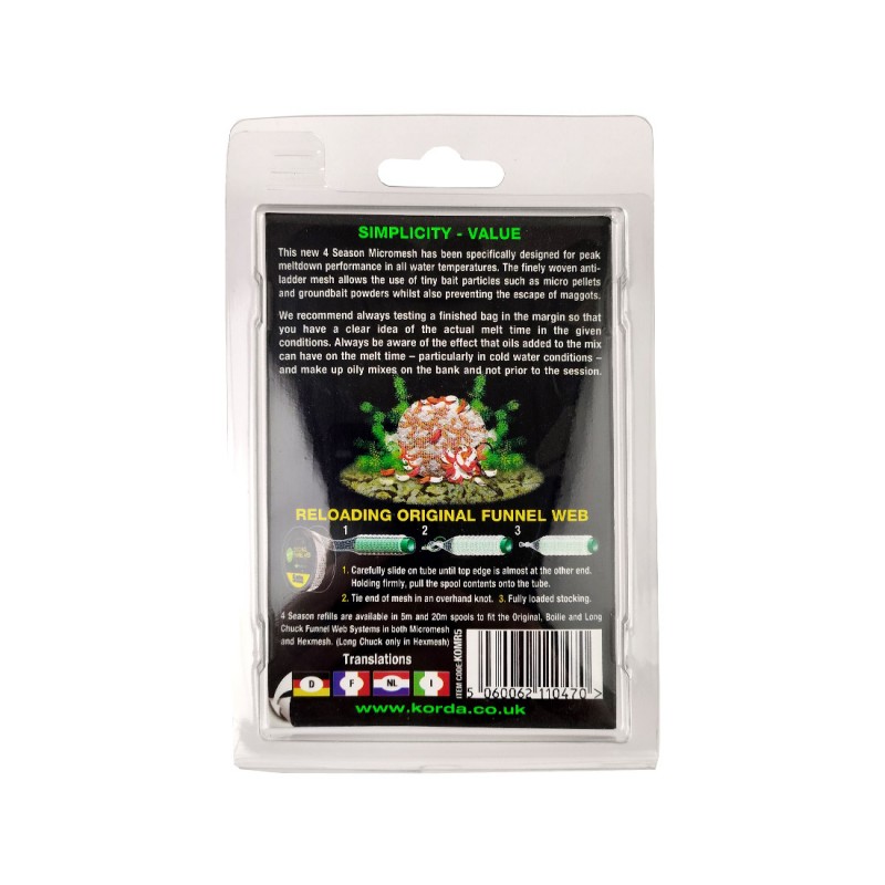 Запасной сетчатый ПВА-рукав MicroMESH для системы Korda Funnel Web, хорошо растворяющийся в воде при любой температуре.