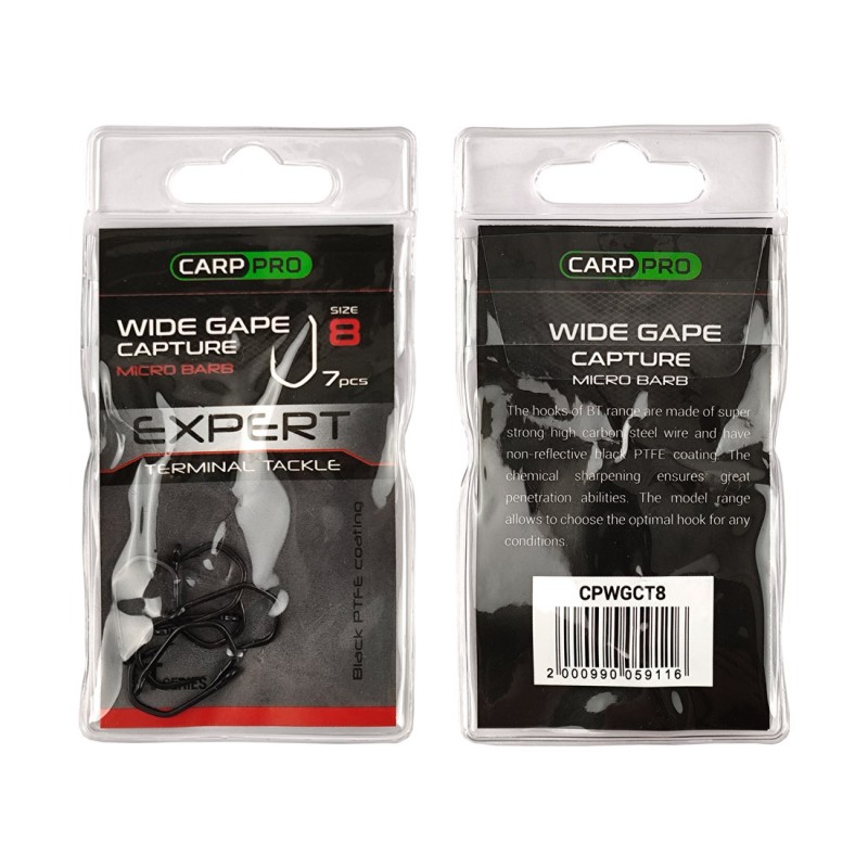Pro Wide Gape Capture доступен в размерах 4, 6, 8, 10 и 12, что позволяет ловить рыбу от карася до дикого сазана.