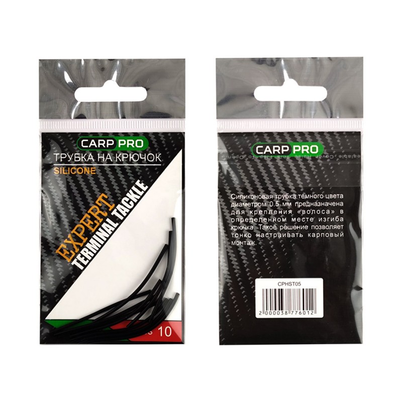 Силиконовая трубка Carp Pro темного цвета диаметром 0.5 мм предназначена для крепления «волоса» в определенном месте изгиба крючка. Такое решение позволяет тонко настраивать карповый монтаж. В упаковке — 10 шт.