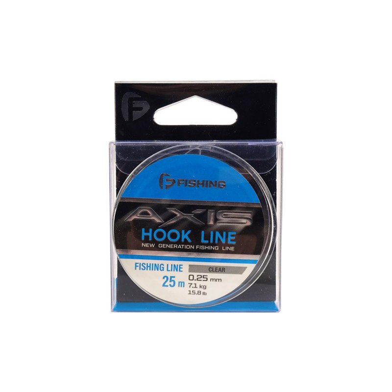 F-FISHING Леска Axis Hook Line Clear - суперпрочная монофильная леска изготовленная по японским технологиям из современных полимерных материалов. Предназначена для изготовления поводков в фидерных и поплавочных оснастках. Прочная, достаточно мягкая, в том числе и на узлах, устойчива к абразиву, обладает практически нулевым эффектом памяти и средней растяжимостью.