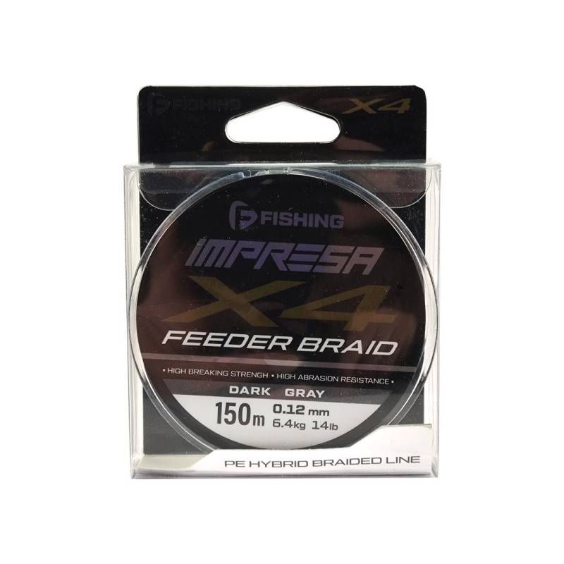 F-FISHING Шнур Impresa Braid PE X4 Feeder – высококачественный PE-шнур, изготовленный по гибридной технологии четырехжильного плетения. Обладает высокой абразивной устойчивостью, способен отлично противостоять камням и ракушке. Технология Hybrid обеспечивает высокую плотность плетения волокон, что позволяет не изнашивать кольца удилища. Данный шнур адаптирован для ловли на фидер.