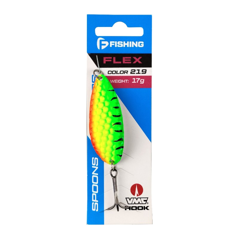 F-FISHING Flex – серия колеблющихся блесен с поразительной уловистостью. Особая форма тела, рифленая поверхность и великолепная игра приманки магически действуют на хищника. Блесна Flex работает там, где остальные блесны пасуют, причем как на течении, так и в стоячей воде.