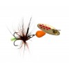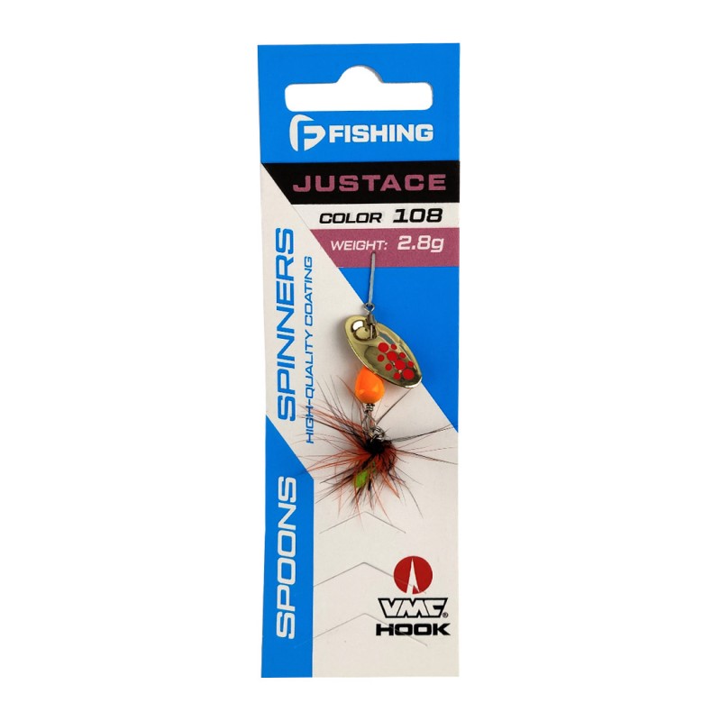 F-FISHING Justace – популярная серия компактных вращающихся блесен ин-лайн (In-line) – с лепестком, насаженным непосредственно на ось блесны, то есть без так называемой дужки, – разработанных для ловли в горных ручьях. При всей своей компактности, благодаря тяжелому сердечнику, эти приманки имеют достаточный вес для дальних и точных забросов. Лепесток не залипает, быстро заводится, прекрасно работает не только на любой скорости проводки, но и на падении приманки. Проводка блесен in-line Justace может быть как скоростной в приповерхностных слоях воды, так и глубоководной – с самым медленным вращением лепестка на грани сбоя, что часто соблазняет на поклевку даже мирную рыбу, не говоря уж о хищных и полухищных видах. Вертушки Justace стабильно держат заданный горизонт проводки, что позволяет эффективно использовать их и в стоячей воде, и на течении при облове приямков, обраток, речных перекатов и т.п. Блесны комплектуются острейшими тройниками VMС с навязанными на них мушками, а разнообразие цветов и размеров Justace F-FISHING позволяет без труда выбрать подходящую модель под любые условия ловли.