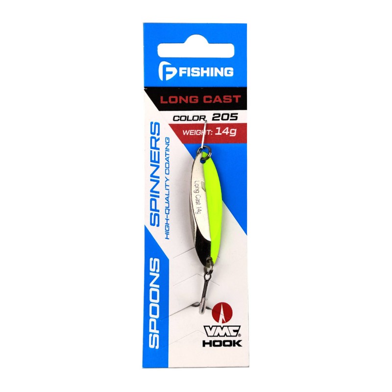 F-FISHING Long Cast – серия колеблющихся блесен типа «Кастмастер», отличающихся более чем демократичной ценой при высоком уровне исполнения. Это идеально сбалансированные приманки, которые характеризуются исключительными полетными качествами, стабильной игрой, способной соблазнить как активного поверхностного хищника на быстром речном течении, так и пассивных обитателей озерных глубин. Long Cast продуктивны при любой проводке: медленно переваливаясь с боку на бок у самого дна, они привлекут щуку, окуня, судака, сома, а резво играя бликами у самой поверхности или в толще воды, соблазнят осторожного жереха. Приманки F-FISHING LongCast оснащаются заводными кольцами и острейшими тройниками VMС, имеют высококачественное покрытие и цветовую гамму, наиболее востребованную у наших хищных и полухищных рыб.