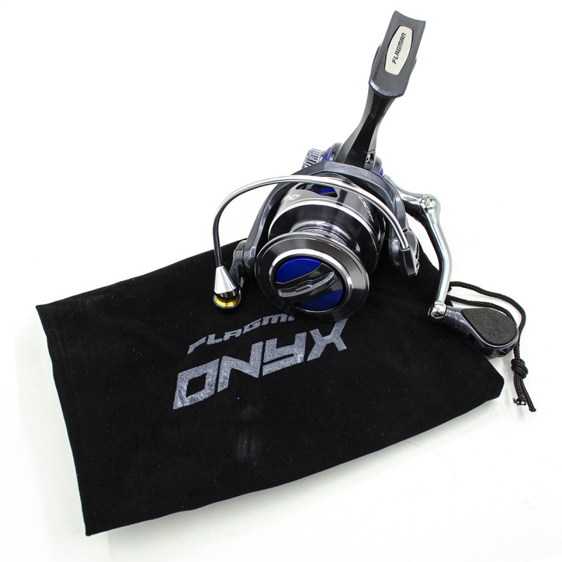 Серия новых спиннинговых катушек Flagman Onyx выделяется органичным дизайном, подчеркивающим их великолепную динамику и технологическое совершенство. В прекрасно сбалансированном механизме, заключенном в легкий корпус из высокопрочного пластика, используется 9 шарикоподшипников из нержавеющей стали, что обеспечивает катушке плавный равномерный ход и замечательные тяговые характеристики. Точеная алюминиевая шпуля и ролик лесоукладывателя со сверхтвердым напылением предполагают свободное использование тонких шнуров и лесок, а усовершенствованный кулисный механизм обеспечивает их качественную укладку. Поверхность шпули «опоясана» полосой с мелкой насечкой, которая препятствует проворачиванию намотанной лески или шнура под большими нагрузками. Все катушки Onyx оснащены облегченными шпулями с коническим буртиком, что также положительно влияет на дальность заброса.