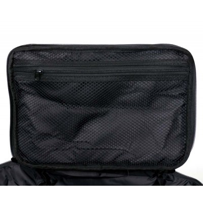 Достаточно большая и вместительная спиннинговая сумка на молнии для транспортировки и хранения одежды, рыболовных принадлежностей и коробок с приманками. Сумка выполнена из прочной синтетической ткани. Непромокаемое жесткое дно сформовано из плотного прорезиненного материала. Сумка оснащена двумя боковыми карманами и одним фронтальным. Сверху крышки предусмотрена шнуровка для закрепления плащ-накидки или других предметов экипировки, с внутренней стороны всю площадь занимает большой сеточный карман на молнии. Для транспортировки сумки используются наплечный ремень с мягкой накладкой и ручки.