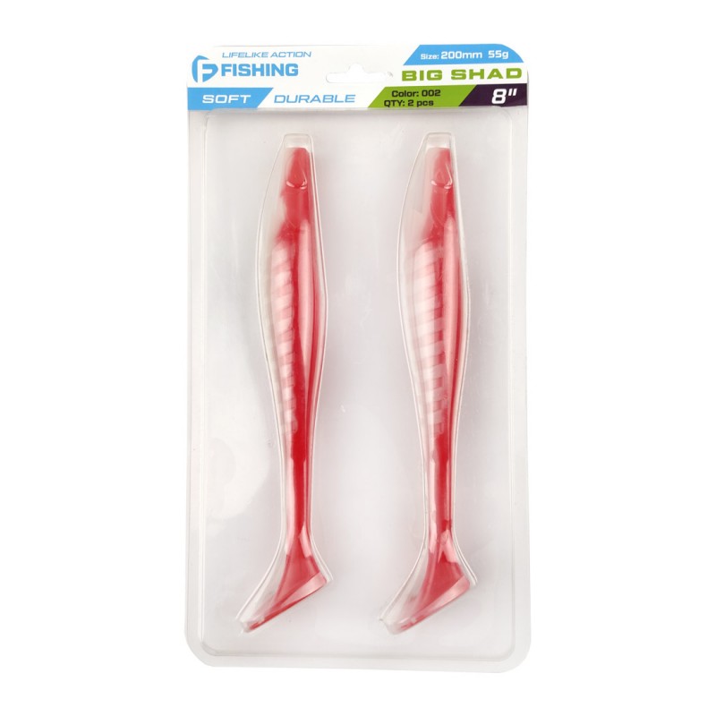 F-FISHING Big Shad 8" – крупный виброхвост удлиненной формы, изготовленный из мягкого силикона. Тело приманки сплющено с боков, сверху и снизу имеются специальные прорези, оптимизирующие использование Big Shad с офсетным крючком. Благодаря объемной пятке виброхвост начинает играть даже при самой медленной проводке. Игра его легкая и размашистая. Колебания хвоста передаются на тело, благодаря чему приманка раскачивается при проводке, привлекая хищника с больших расстояний. На теле Big Shad имеются специальные насечки, которые создают привлекательную для хищника турбулентность. Приманка отлично работает на классической джиг-головке, шарнирном монтаже, штопоре. Модель прекрасно подойдет для ловли трофейного судака, щуки и сома. Большой рыбе – крупная приманка, – это как раз о Big Shad!