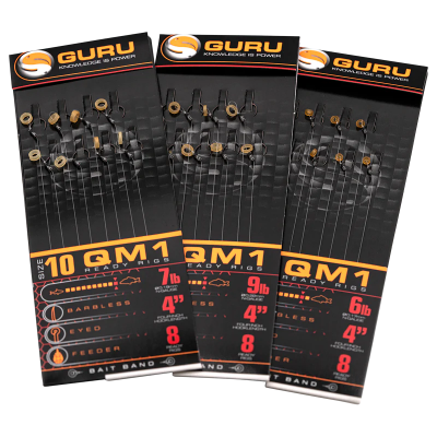 Guru QM1 Bait Band 4" – полностью готовые к использованию поводки с волосяной оснасткой и креплением для насадки в виде резинового колечка. Такой способ монтажа позволяет закрепить различные виды насадок типа пеллетса, минибойлов и т.п. без каких-либо дополнительных инструментов. Поводки Guru QM1 Bait Band 4" имеют длину 10 см. Они изготовлены из прочной качественной японской монофильной лески Guru N-Gauge с использованием крючка Guru QM1, разработанного специально для волосяных оснасток. Крюк имеет плавный хищный загиб и загнутое вовнутрь жало, что положительно влияет как на качество подсечки, так и на эффективность вываживания рыбы. В комплекте 8 готовых поводков Guru QM1 Bait Band с крючками № 10-16 и соответствующим нагрузке диаметром лески.