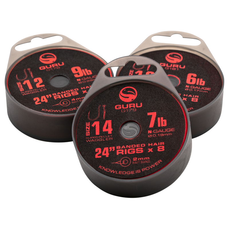 Guru Super Pellet Waggler Bait Band 24" – полностью готовые к использованию поводки с волосяной оснасткой и креплением для насадки в виде резинового колечка. Такой способ монтажа позволяет закрепить различные виды насадок типа пеллетса, минибойлов и т.п. без каких-либо дополнительных инструментов. Поводки Guru Super Pellet Waggler Bait Band 24" имеют длину 60 см и разработаны для поплавочной ловли на пеллетс на коммерческих водоёмах. Они изготовлены из прочной качественной японской монофильной лески Guru N-Gauge с использованием безбородого крючка Guru Super Pellet Waggler Hook, разработанного специально для такой ловли. Крюк имеет округлый хищный загиб и загнутое вовнутрь жало, что положительно влияет как на качество подсечки, так и на эффективность вываживания рыбы. В комплекте 8 готовых поводков Guru Super Pellet Waggler Bait Band с крючками № 12-20 и соответствующим нагрузке диаметром лески.