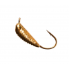 За счет достаточно тяжелого материала мормышка быстро достигает глубины. Форма тела мормышки напоминает куколку насекомого. Фактурный рисунок придает натуральный вид.