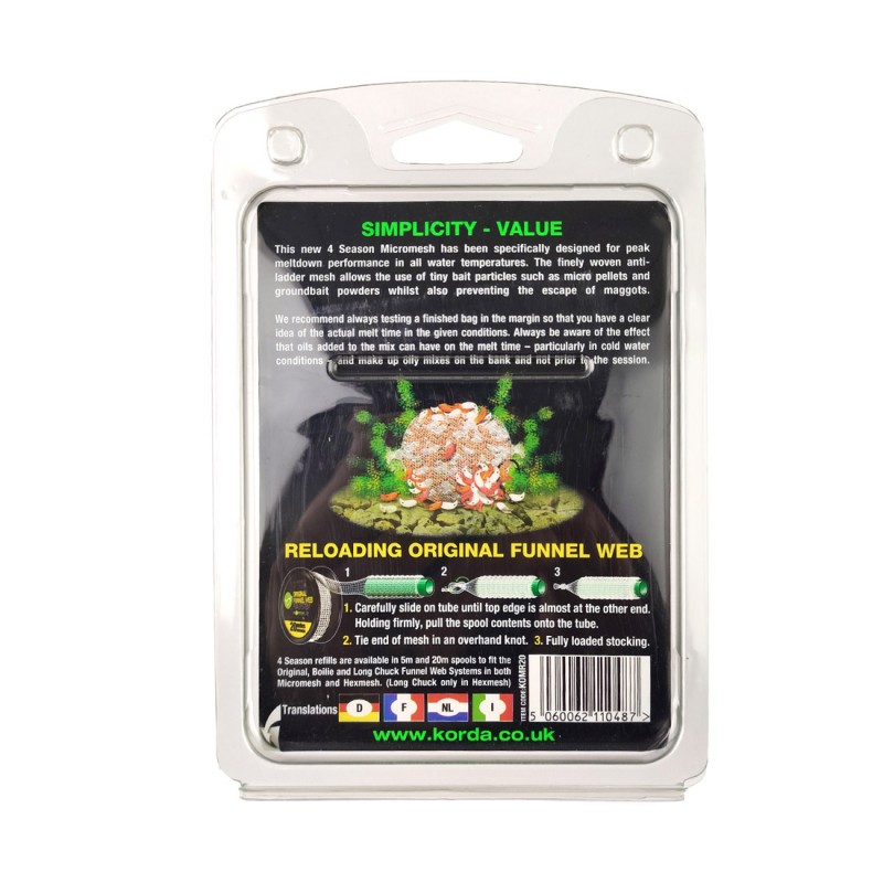 Запасной сетчатый ПВА-рукав MicroMESH для системы Korda Funnel Web, хорошо растворяющийся в воде при любой температуре.