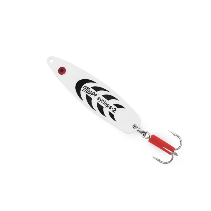 SYCLOPS — одна из лучших колеблющихся блесен в мире, имеющая превосходно отработанную форму. Старинные прототипы, схожие с этой блесной, в наше время практически не сохранились. SYCLOPS унаследовал от них двойной прогиб в горизонтальной проекции, обеспечивающий при проводке максимальное сходство с движениями живой рыбы. Блесна не имеет мягкого профиля, ее форма образована сопряжением плоскостей, в том числе, образующих в хвостовой части «ребро устойчивости», гарантирующее SYCLOPS устойчивую, без «свалов», игру как на спокойной воде, так и при любой скорости течения. Благодаря идеально расположенному центру тяжести и удачному соотношению между весом и площадью приманки, все размеры SYCLOPS сохраняют превосходную игру даже при свободном падении после прекращения проводки. Как известно при ловле лосося и щуки такой приём бывает незаменим. Кроме того, эффект от движения блесны значительно усиливается за счет игры света, отражаемого плоскостями. Стандартный вариант SYCLOPS имеет окраску серебряного, золотого и черного цветов, с красным и черным рефлекторным рисунком. Кроме этого, MEPPS производит блесны, декорированные желтой наклейкой с красным рисунком. SYCLOPS — практически идеальная приманка для всех видов хищных рыб на всех водоемах и при любых условиях ловли. Сложный профиль имеет десять граней отражения света. Его движение, благодаря идеальным колебаниям в различных плоскостях, очень точно имитирует живую рыбу - идеальную жертву хищника. Устойчивость игры гарантирована при любой скорости проводки. Такая характерная особенность облегчает и быстрый охват больших участков стоячих вод (щука, судак, окунь), и обеспечивает удобную ловлю на течении (лосось, кумжа, форель).