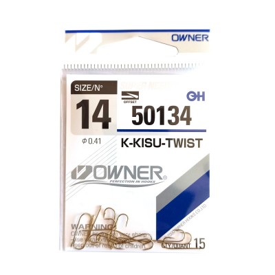 Owner K-Kisu Twist gold (50134) – серия универсальных крючков, изготовленных из высокоуглеродистой стали. Owner 50134 имеют классический круглый загиб, острейшее жало, аккуратную бородку, удлиненное цевье с удобной для привязывания лопаткой и защитное никелевое покрытие. Прекрасно подходят как для поплавочной, так и для донной ловли на деликатные насадки животного и растительного происхождения. Owner K-Kisu Twist – в меру тонкие, достаточно прочные, зацепистые и очень надежные крючки для ловли осторожной рыбы.