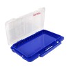 Односторонняя коробка для хранения приманок и аксессуаров из ударопрочного армированного пластика PP (полипропилен). Доступна регулировка свободного пространства посредством изменения расположения перегородок (6 шт). На внутренней стороне крышки нанесено рифление, препятствующее прилипанию мягких приманок. Коробка имеет возможность соединения с другими коробками серии посредством замков-защелок в нижней части.
