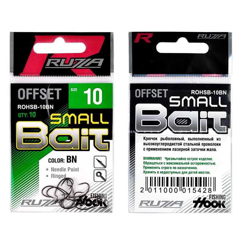 RUZZA Крючок офсетный Offset Hook Small Bait, выполнен из высокоуглеродистой стальной проволоки с применением лазерной заточки жала.