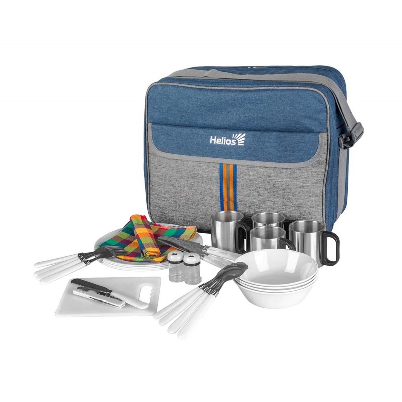 Набор для пикника Helios позволит комфортно отдохнуть с друзьями и семьей на природе. Удобный и компактный, он не займет много места при транспортировке, при этом в нем есть все, самое необходимое для отличного пикника на свежем воздухе.